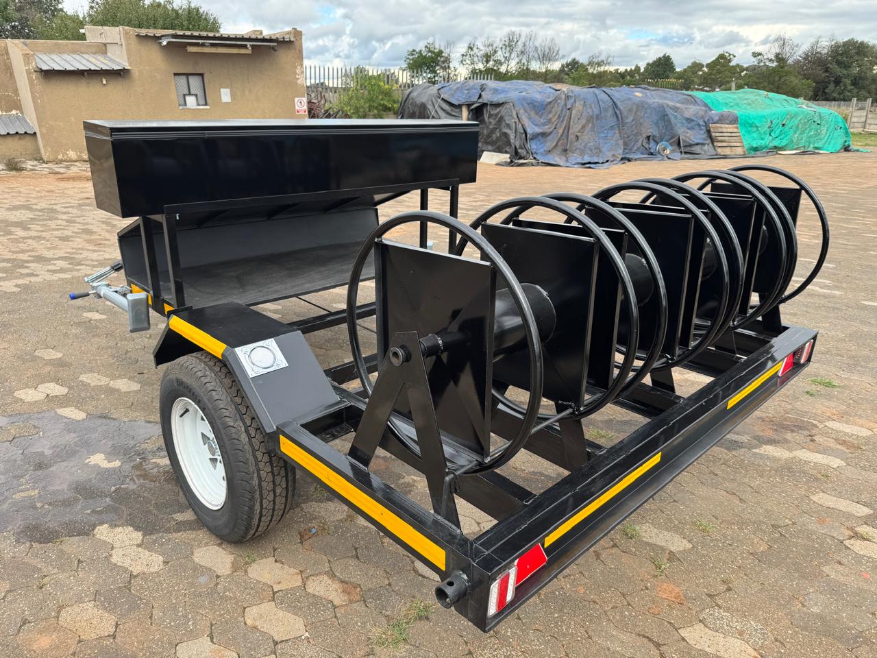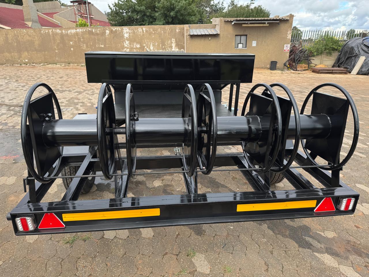 Custom hose reel trailers for irrigation, firefighting, and industrial cleaning. Built to your reel size and deployment needs. We build in Randfontein, Gauteng and deliver quality custom builds.