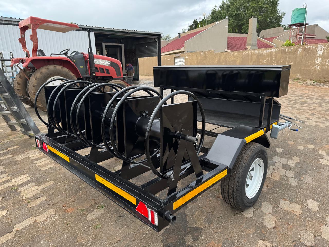 Custom hose reel trailers for irrigation, firefighting, and industrial cleaning. Built to your reel size and deployment needs. We build in Randfontein, Gauteng and deliver quality custom builds.